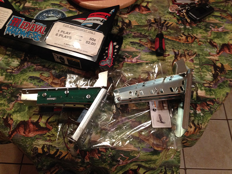 For my birthday, my parents bought me an upgraded Williams/Bally Ball Trough Assembly. It was a great present, because at $125 it was hard for me to justify buying it for myself. Thanks Mom and Dad! Here I am holding the new trough up in front of the old one which will be replaced.